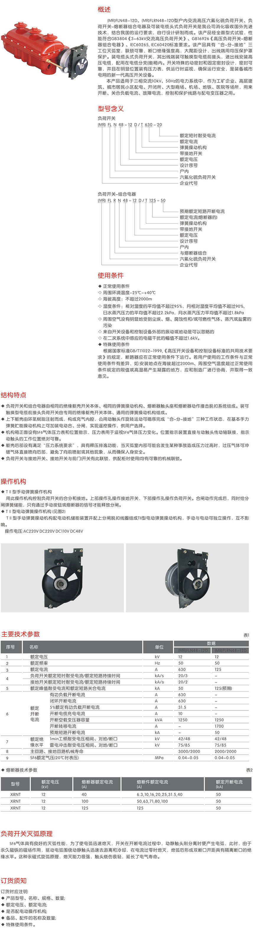 (MR)FL(R)N48-12D户内交流高压六氟化硫负荷开关